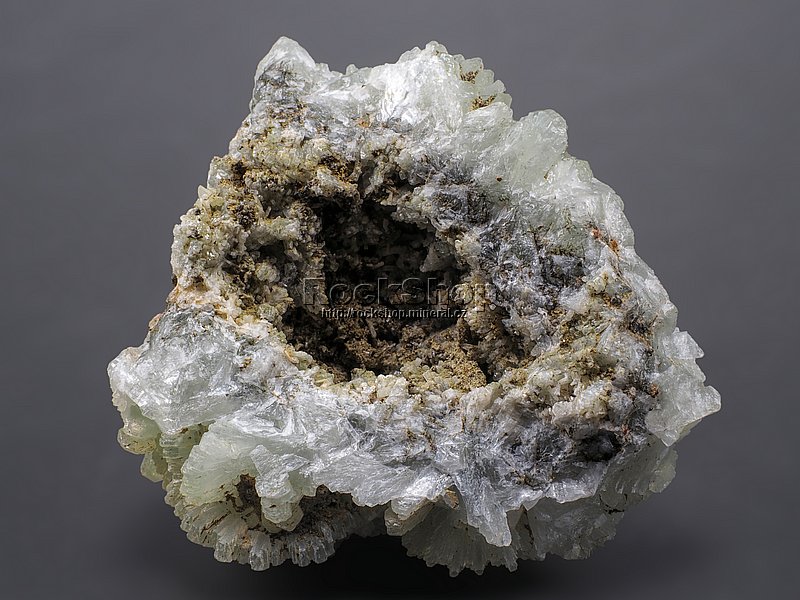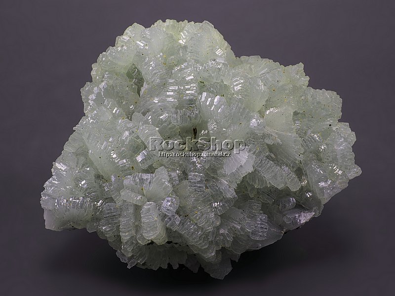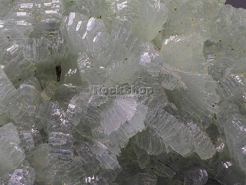 Ukázka světlounce zelených krystalů prehnitu z marocké lokality Boulmane.. |